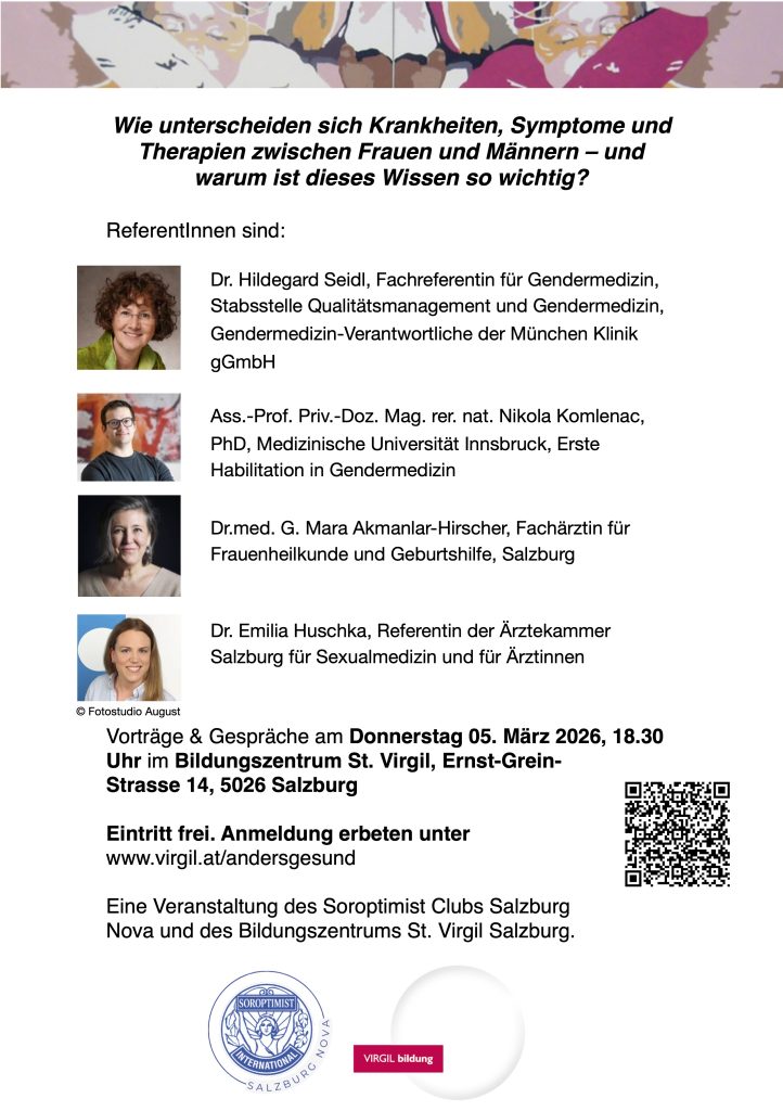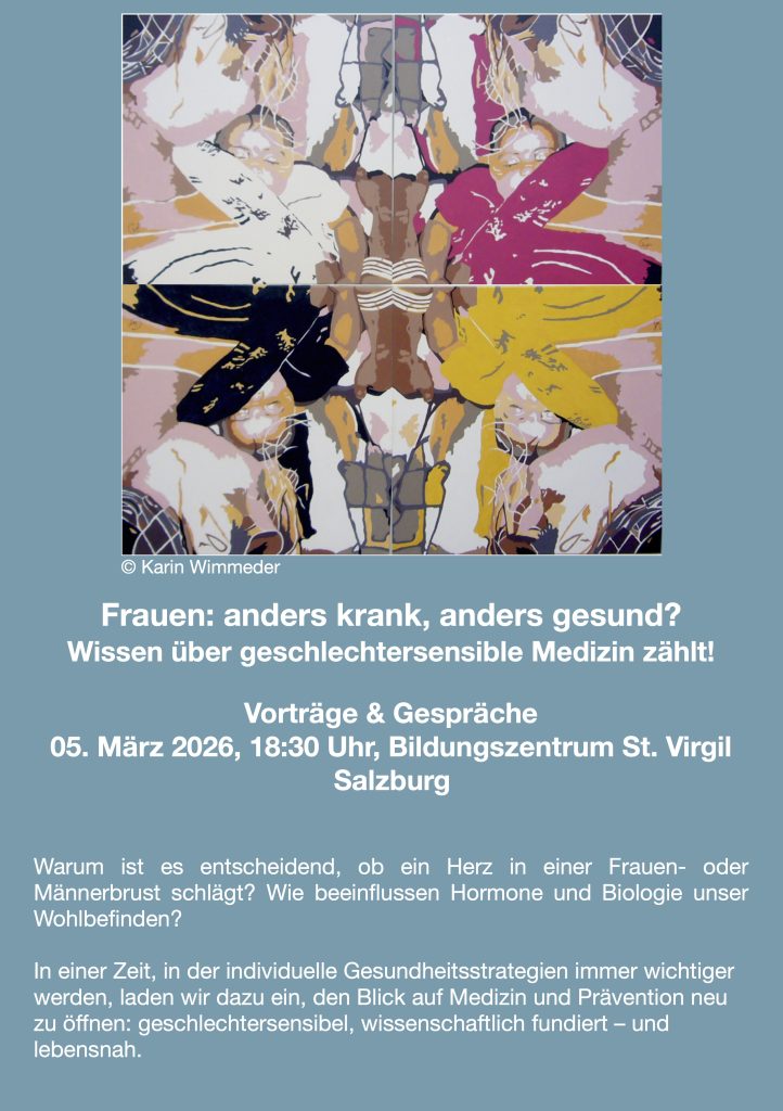 Spannende Info’s dazu gibt es bei unserer Veranstaltung „Frauen: anders krank, anders gesund? Wissen über geschlechtersensible Medizin zählt!“ am 05. März 2026 um 18:30 im Bildungszentrum St. Virgil in Salzburg.